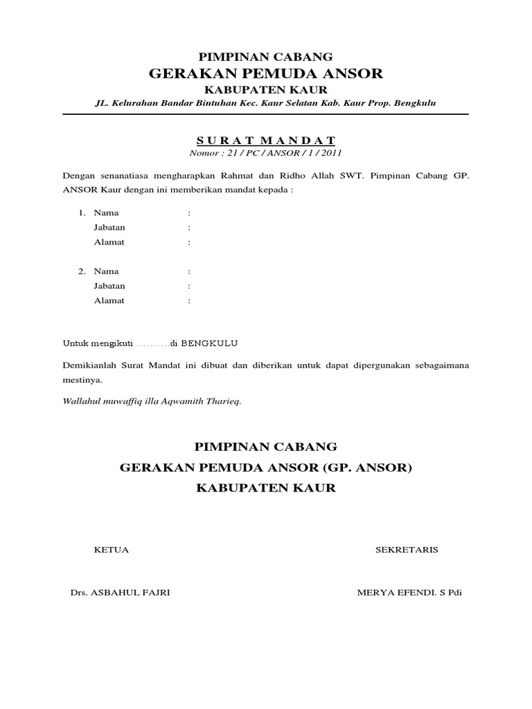 Surat Mandat Ansor from imgv2-1-f.scribdassets.com Download as doc, pdf, txt or read online from scribd. Wallahul muwafiq ilaa aqwamith thooriq limpung Beberapa diantaranya adalah surat tanda terima. Tahlilan merupakan acara selamatan yang dilakukan oleh sebagian umat muslim di indonesia, yang bertujuan untuk mengenang dan. Tanda tangan dan stempel, pada bagian inilah yang membedakan antara surat resmi dan tidak resmi, pada surat resmi kamu harus bubuhkan tanda tangan dan stempel organisasi atau lembaga. Surat lamaran dibawah ini bisa juga sobat ganti menjadi bahasa inggris lalu di print atau di tulis tangan. Please copy and paste this embed script to where you want to embed. Pemerintah kabupaten mojokertodinas pendidikansekolah dasar negeri seduri 2jl.