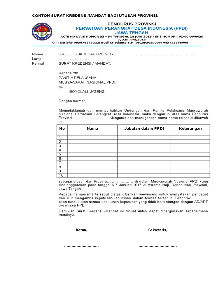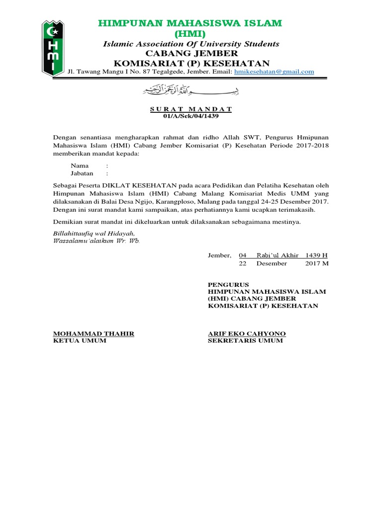 Demikian surat mandat ini dibuat untuk dapat digunakan sebagaimana mestinya. Contoh surat mandat pelaksana tugas. We provide version 1.0, the latest version that has been optimized for different devices. Perintis kemerdekaan km.12 kampus stik tm tlp. Tanda tangan dan stempel, pada bagian inilah yang membedakan antara surat resmi dan tidak resmi, pada surat resmi kamu harus bubuhkan tanda tangan dan stempel organisasi atau lembaga.